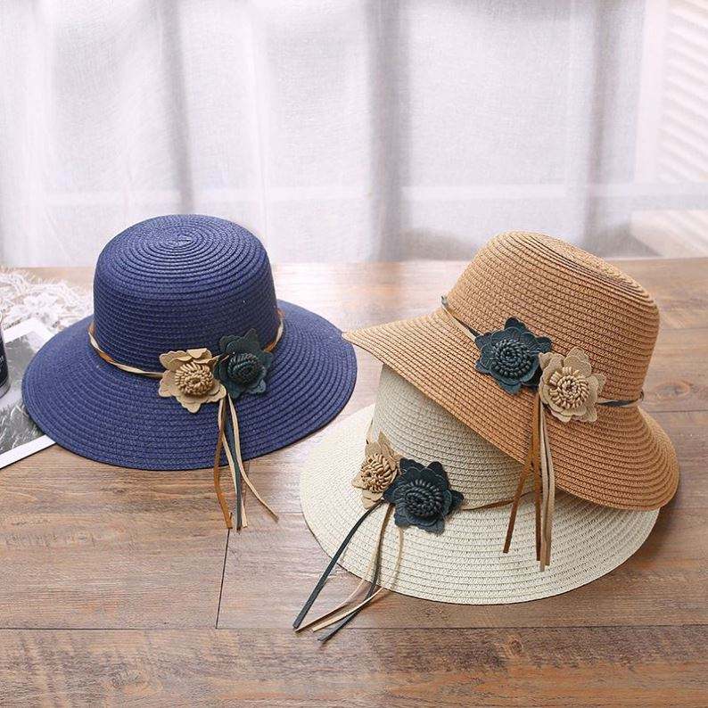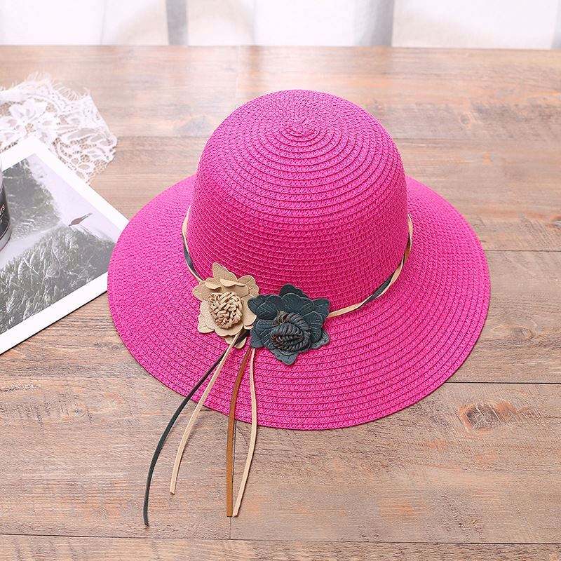 Wholesale Woven Flowers Straw Bucket Hat Women's Sun Hat Small-brimmed Sun-shading Seaside Beach Character Travel Fishing Hat