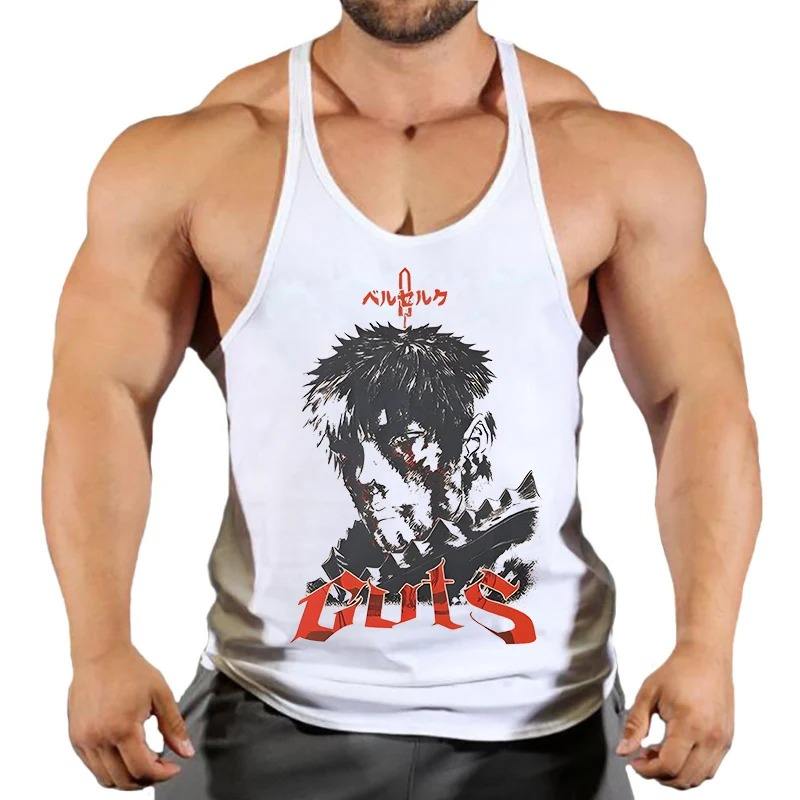 เสื้อกล้ามผู้ชายผ้าคอตตอนโพลีเอสเตอร์ออกแบบโลโก้ได้ตามต้องการชุดออกกำลังกายแบบลำลอง