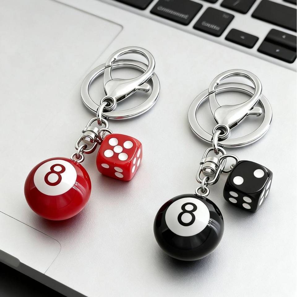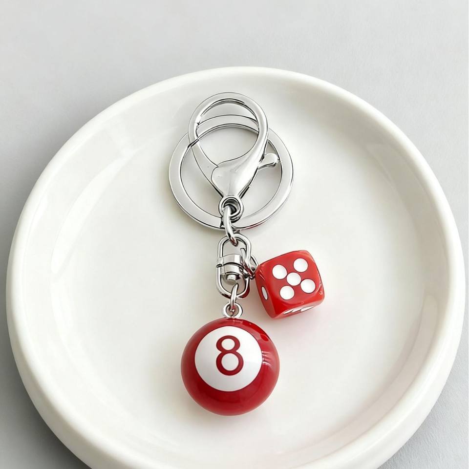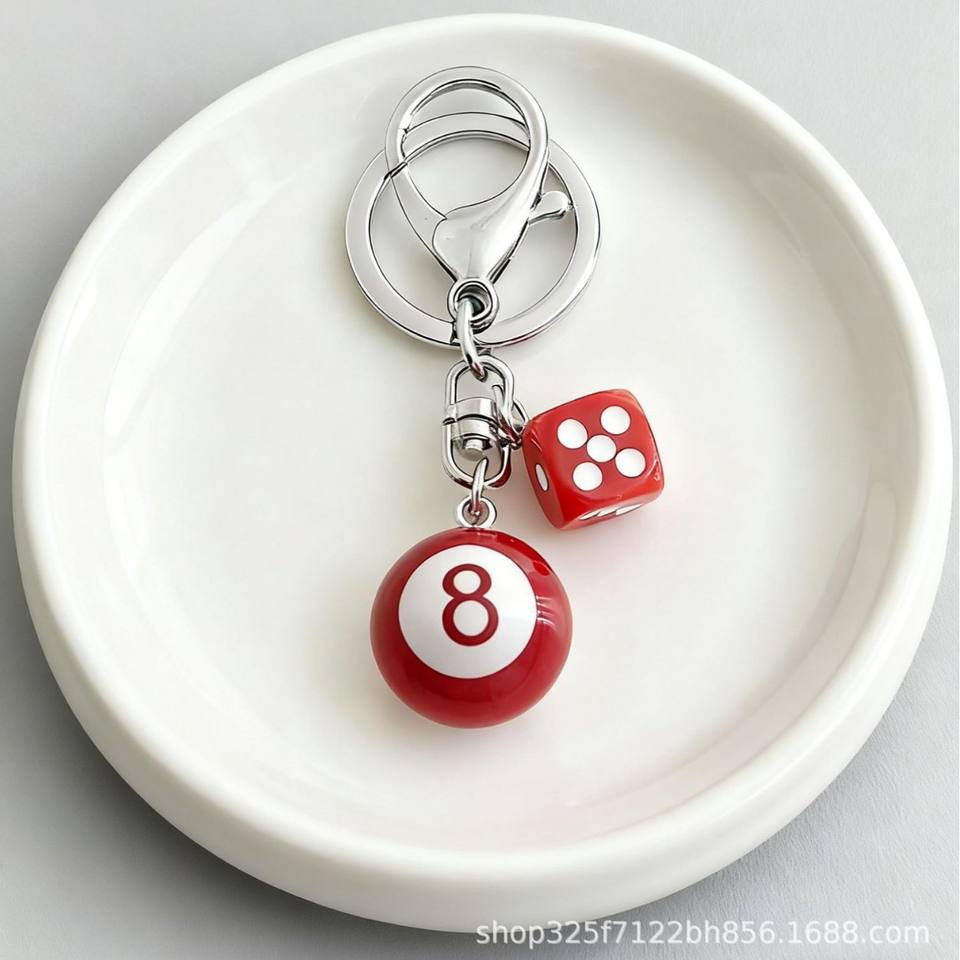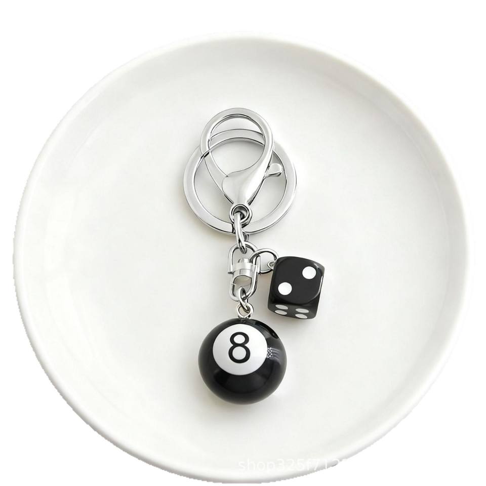 ขายส่ง Y2K ลูกเต๋าสีดำสำหรับโต๊ะพูลบิลเลียดบอลกระเป๋าเสน่ห์น่ารักเมจิกสเน่ห์โซ่8ลูกเครื่องประดับพวงกุญแจยาง