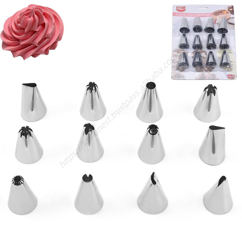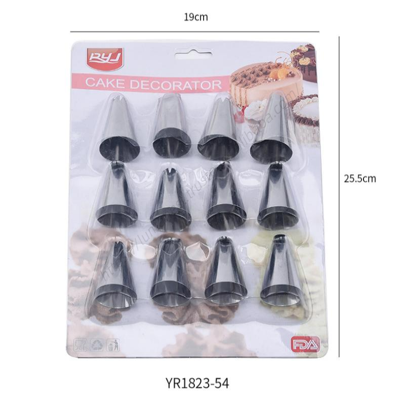 Wholesale YR1823-54 12-piece Large Stainless Steel Decorating Mouth DIY Cake Set Baking Tools
