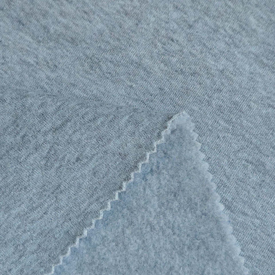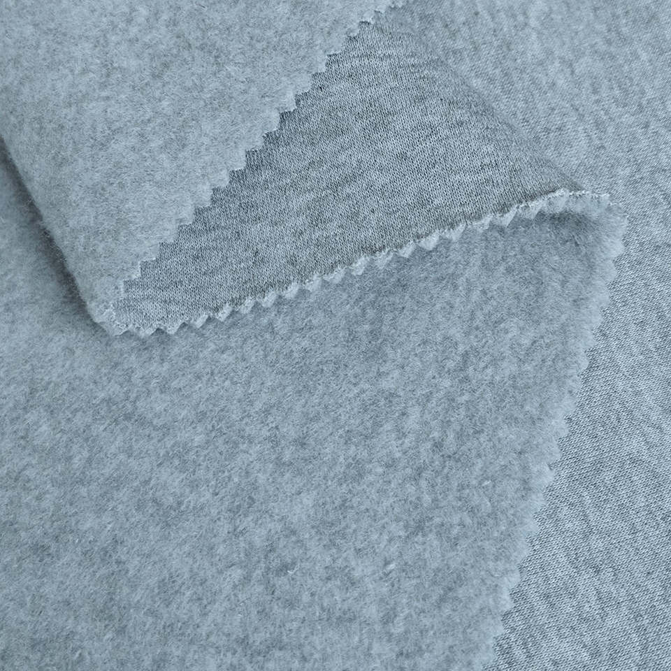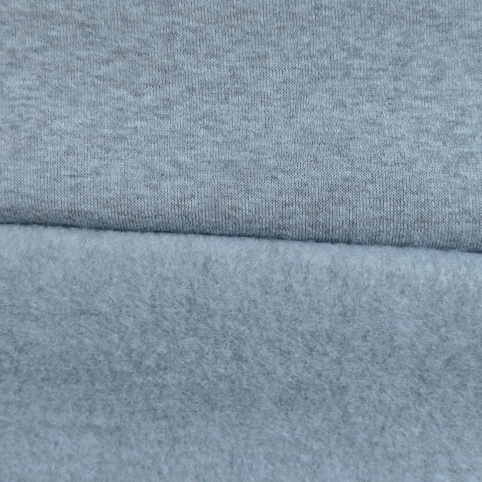 ผ้าฮู้ดดี้เฟรนช์เทอร์รี่ขนหนูเนื้อนุ่ม ขัดด้านเดียว ผลิตจากเส้นใยโพลีเอสเตอร์ 100% น้ำหนัก 350 กรัม สีเทา ย้อมเส้นด้าย ขายส่ง