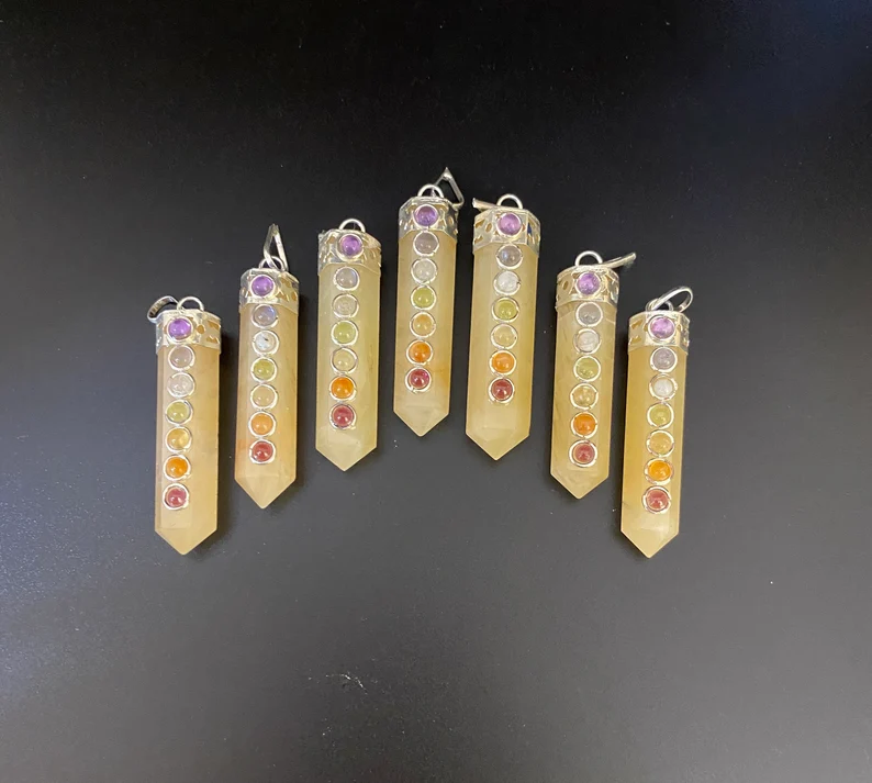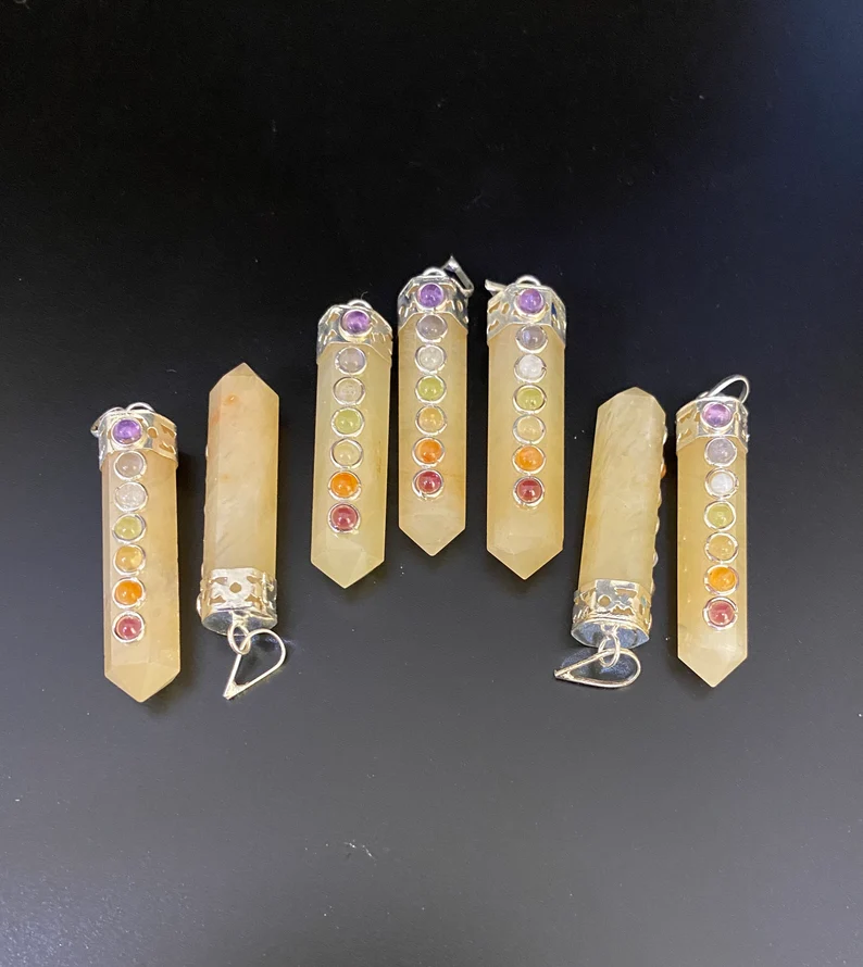 Product name:Yellow Aventurine Seven Chakra Gemstone Pencil Pendant