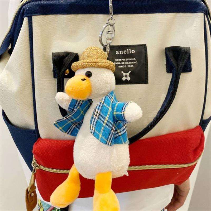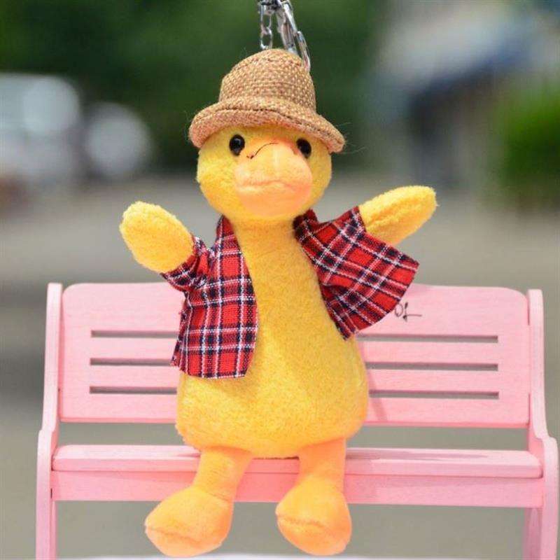 กระเป๋าเป้สะพายหลังรูปเป็ดสีเหลืองพวงกุญแจตุ๊กตายัดนุ่นรูปเป็ดของเล่นตุ๊กตายัดไส้ตุ๊กตาของเล่นตุ๊กตาที่มีเสน่ห์