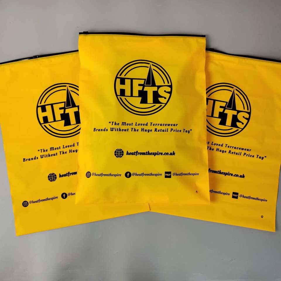 ถุงพลาสติกสีเหลืองสำหรับบรรจุภัณฑ์ขายส่ง พิมพ์โลโก้ตามสั่ง ถุงเก็บเสื้อผ้าสำหรับธุรกิจขนาดเล็ก