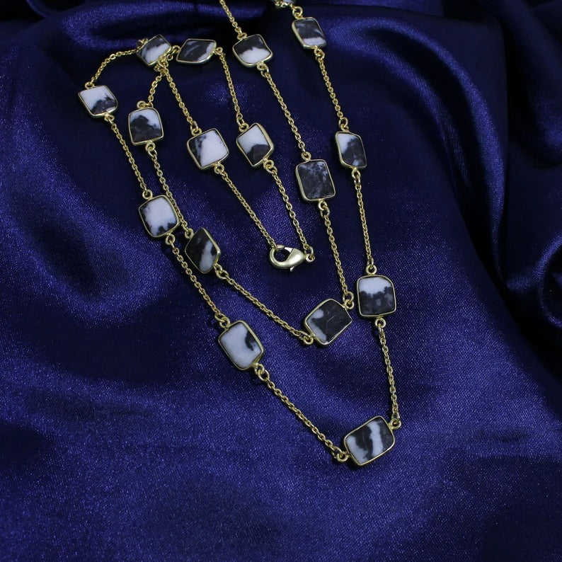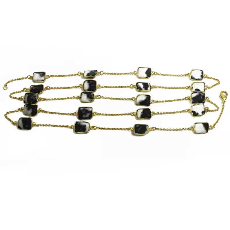 สร้อยคอแจสเปอร์ม้าลายเครื่องประดับอัญมณีชุบทอง
