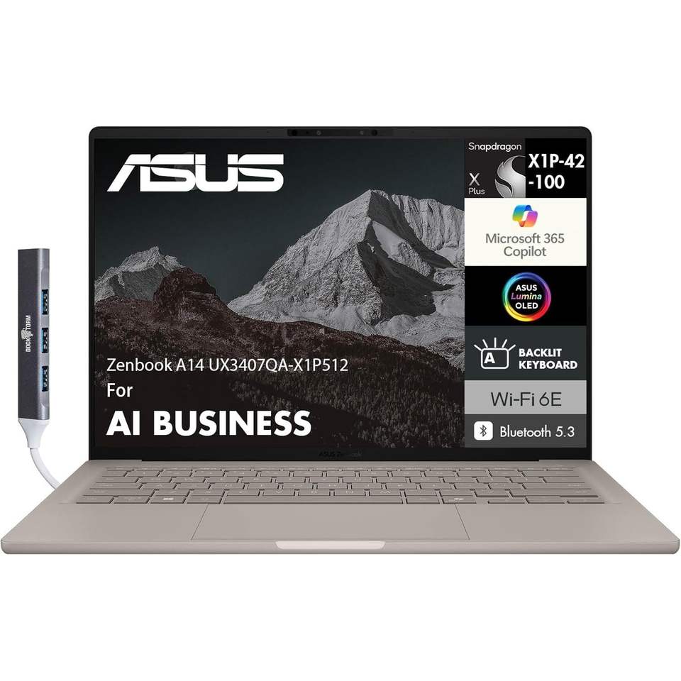 ขายส่ง Zenbook A14 Copilot Plus Ai แล็ปท็อปธุรกิจ หน้าจอ 14.0 นิ้ว Wuxga OLED 90Hz แรม 16GB SSD 3 พอร์ต USB Type-C Snapdragon X