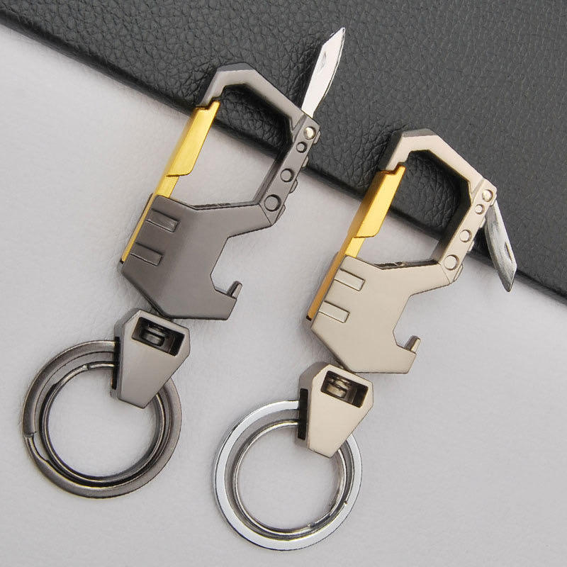 ตะขอหมุน360องศาพวงกุญแจที่เปิดขวดโลหะพร้อมมีดปืนทำจากซิงค์อัลลอยหลายสี