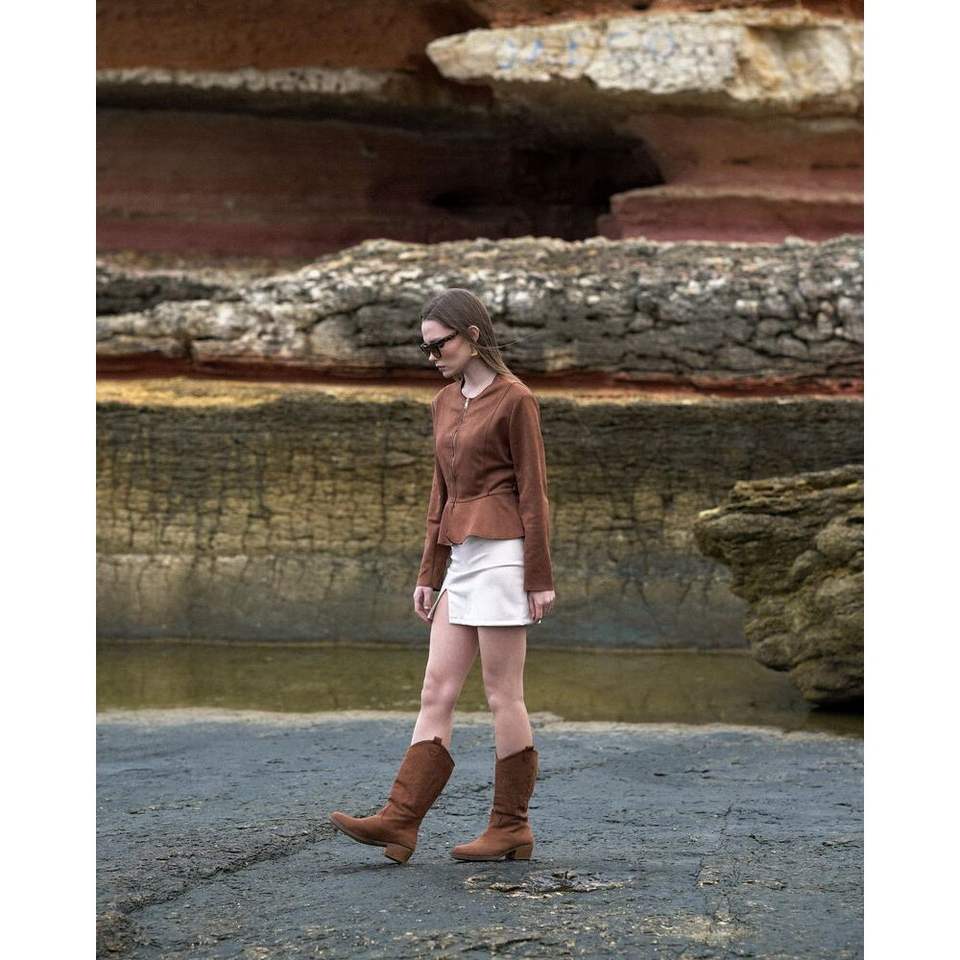 เสื้อแจ็คเก็ตซิปหน้าหนังกลับสำหรับผู้หญิง คอลเลคชั่นพรีเมียม ขายส่ง