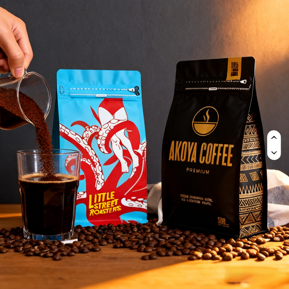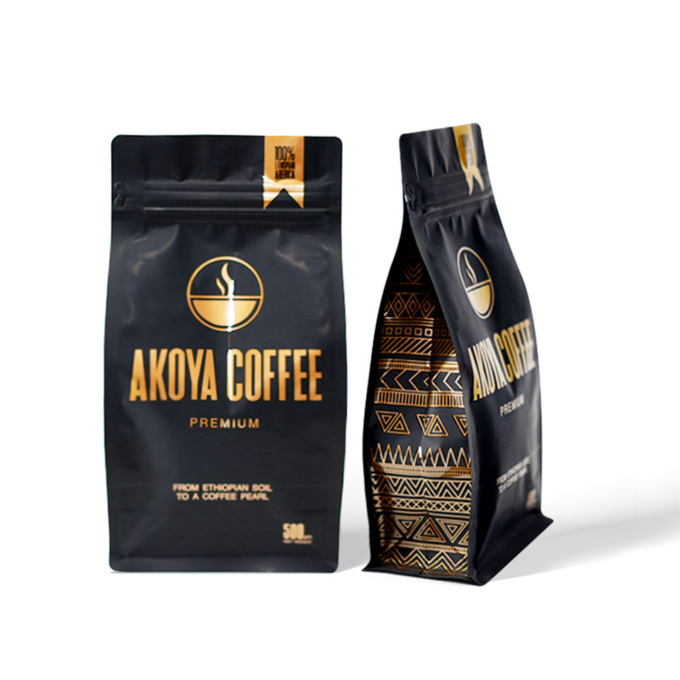 ถุงซิปล็อคขายส่งสำหรับบรรจุภัณฑ์อาหารผงกาแฟชา ถุงวาล์วก้นแบน รับผลิตแบบ OEM