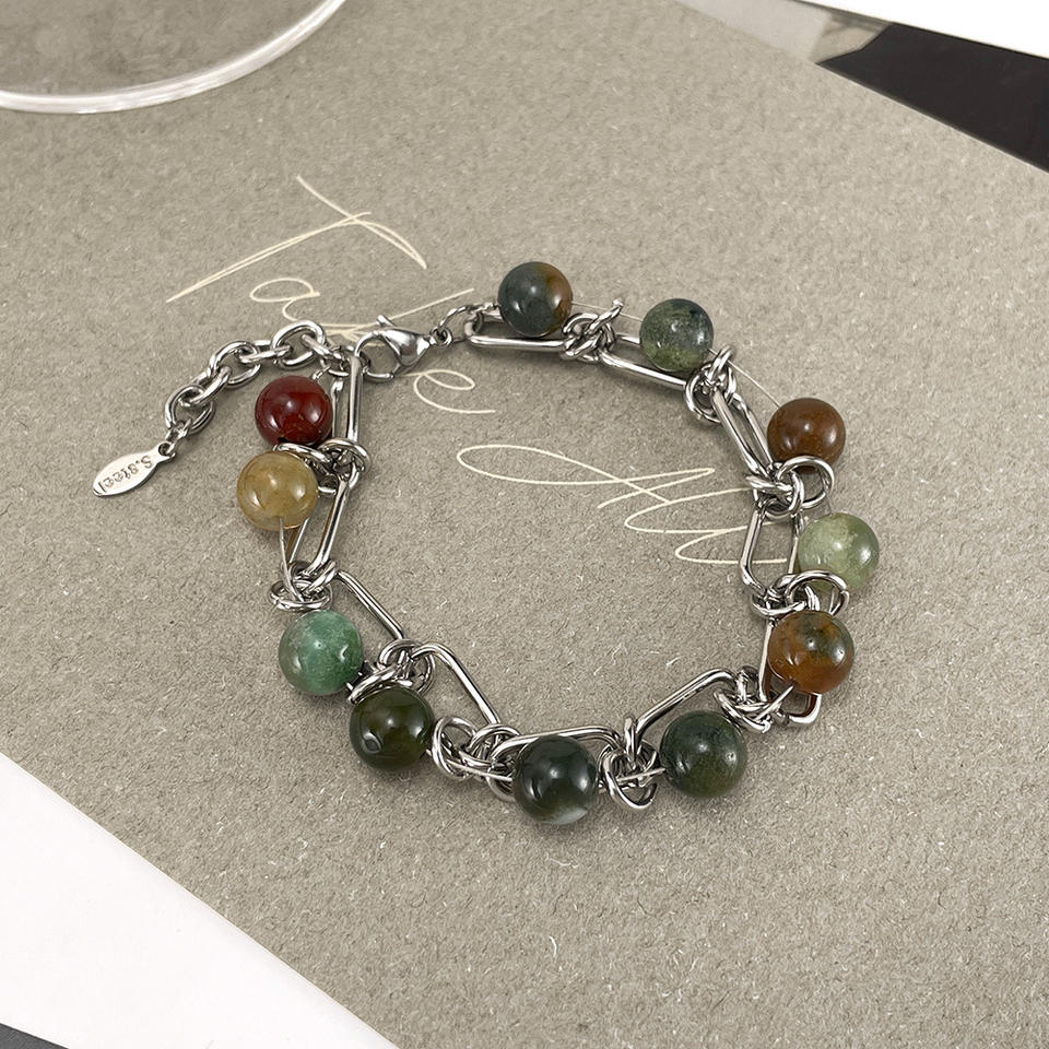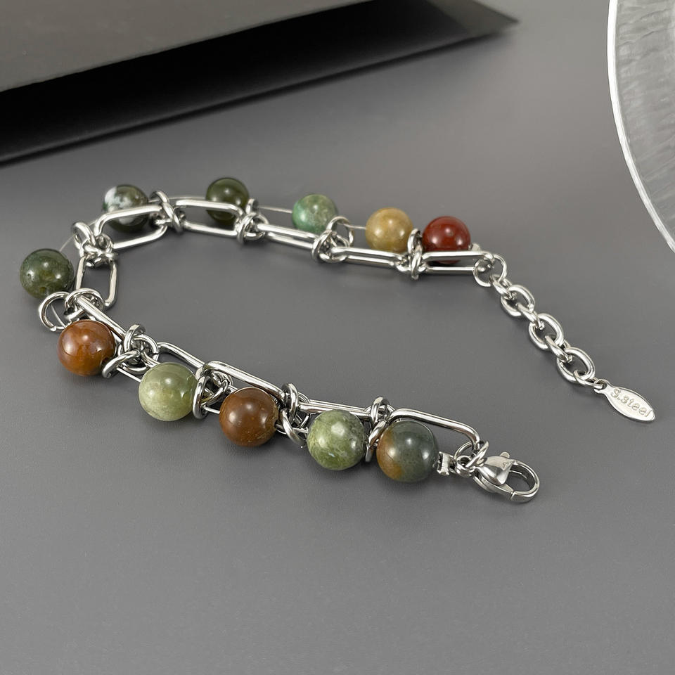 กำไลข้อมือแฟชั่นสำหรับผู้หญิงขายส่ง ชุบทอง 18K ไทเทเนียมสตีล ประดับด้วยหินธรรมชาติหลากสี ลูกปัดรูปดาวเสาร์ ดีไซน์อเนกประสงค์
