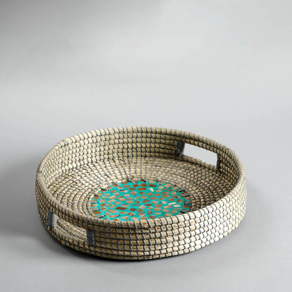 Product Name:Round seagrass serving tray with MOP