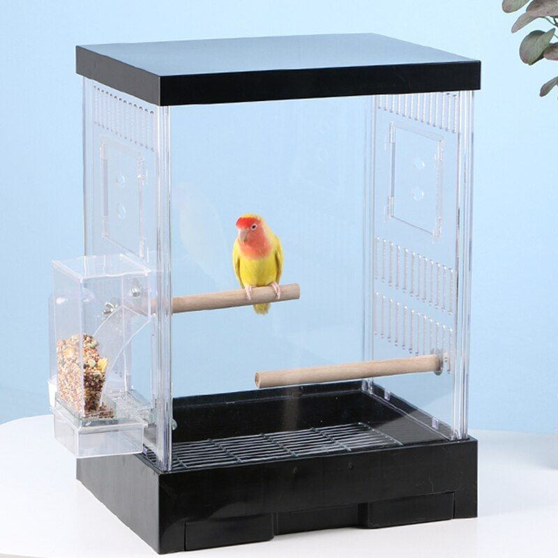 กรงนกอะคริลิคป้องกันฝุ่นสำหรับกลางแจ้งพร้อมที่ป้อนชื่อผลิตภัณฑ์