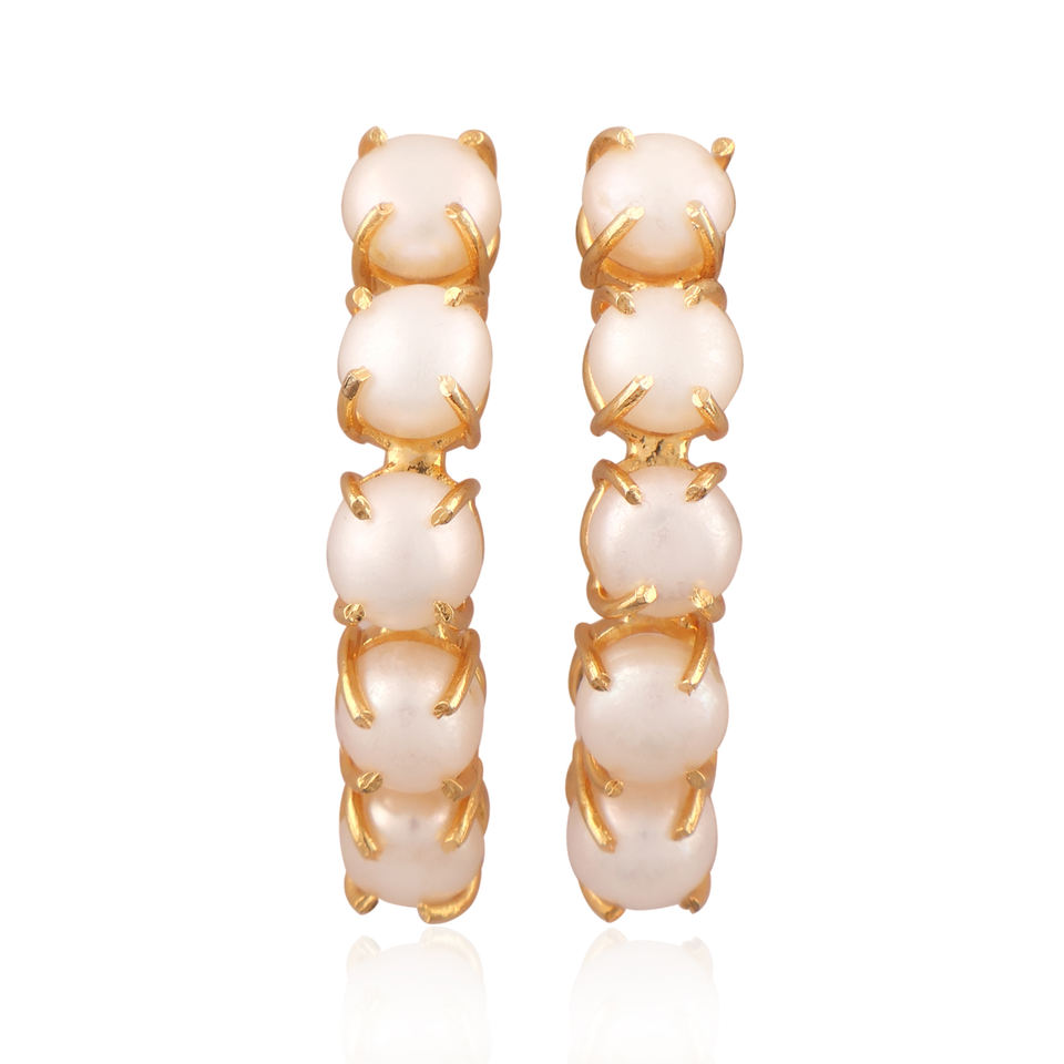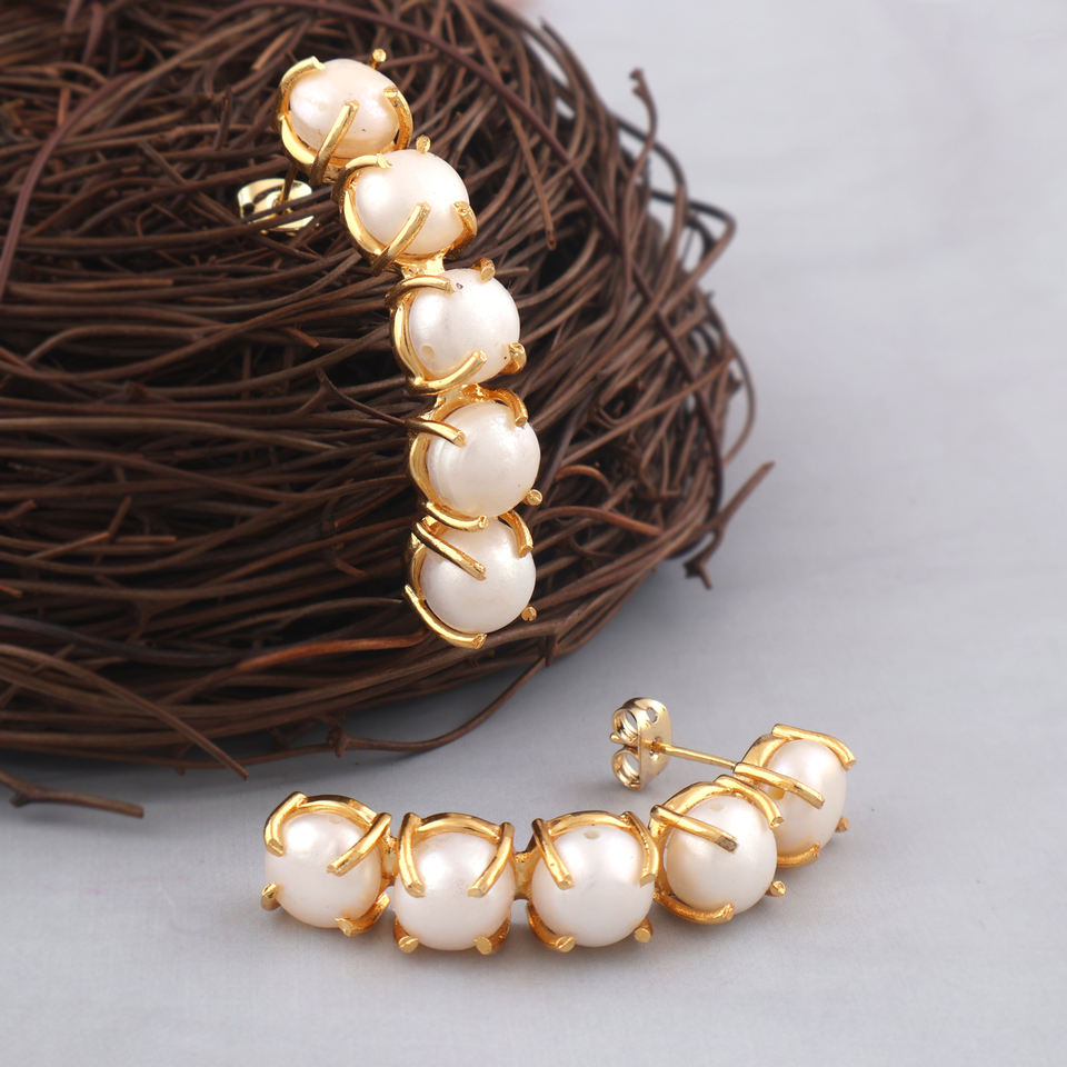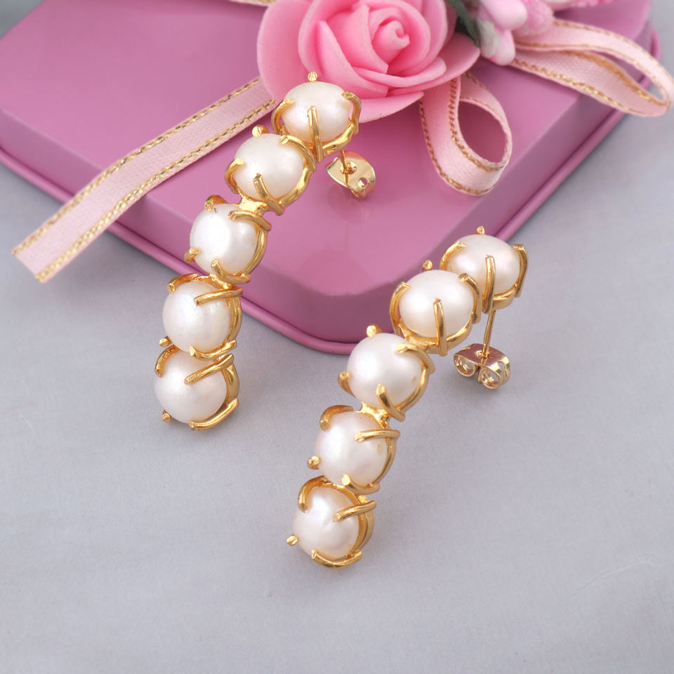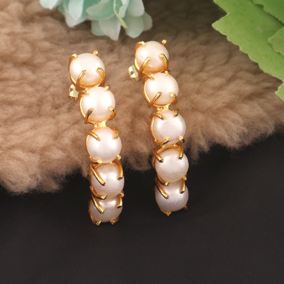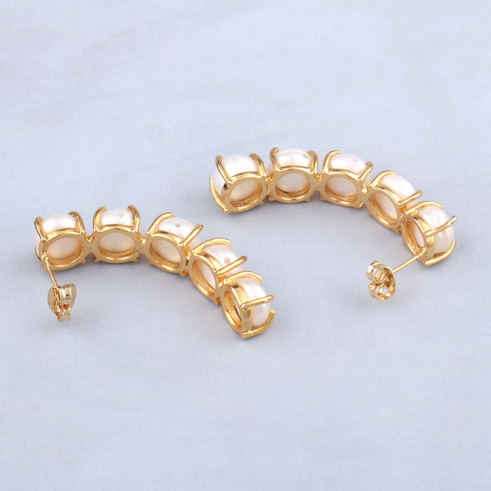 เครื่องประดับตามสั่งต่างหูไข่มุกน้ำจืดธรรมชาติต่างหูห่วงชุบทอง18K ทำจากทองเหลืองต่างหูครึ่งวงกลม