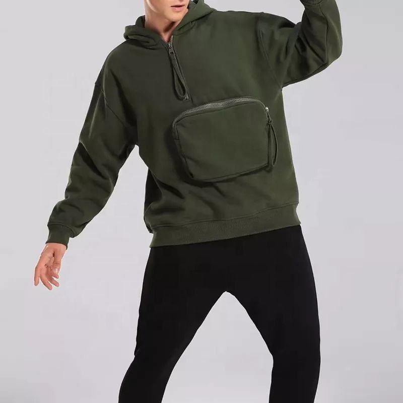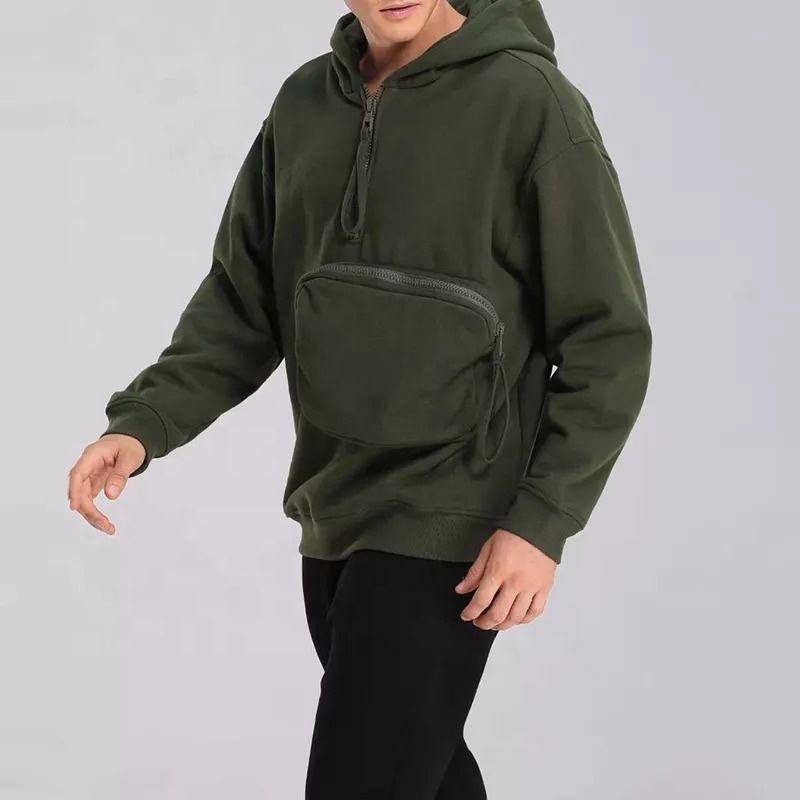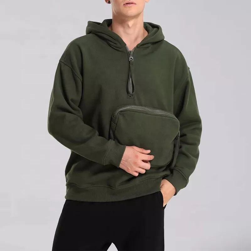 เสื้อฮู้ดแบบสวมหัวผ้าฝ้ายแขนยาวครึ่งซิปสำหรับผู้ชาย,มีโลโก้แบบกำหนดเองไซส์ใหญ่พิเศษ