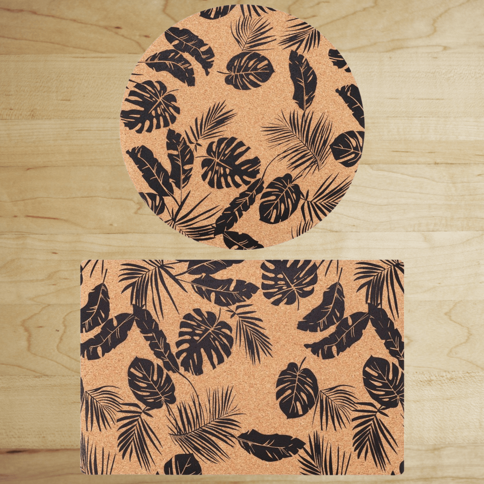 แผ่นรองจานงานแต่งงานรูปสี่เหลี่ยมผืนผ้าแบบกำหนดเองขายส่ง ทำจากไม้ก๊อก เป็นมิตรกับสิ่งแวดล้อม ป้องกันความร้อน ด้านล่างเป็นยาง รองรับการพิมพ์สี ซักล้างได้