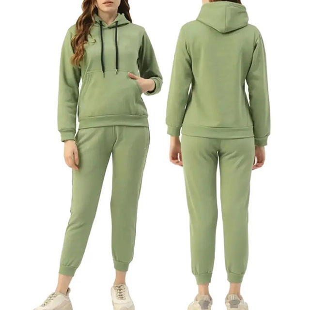 Wholesale customized private label women clothing pain solid Women Tracksuit sets pullover 100%cotton with pocket tracksuits