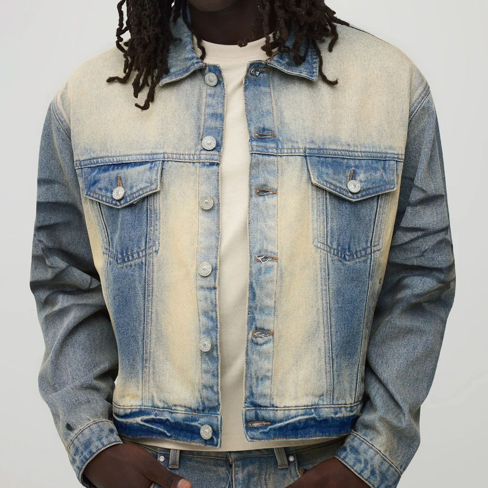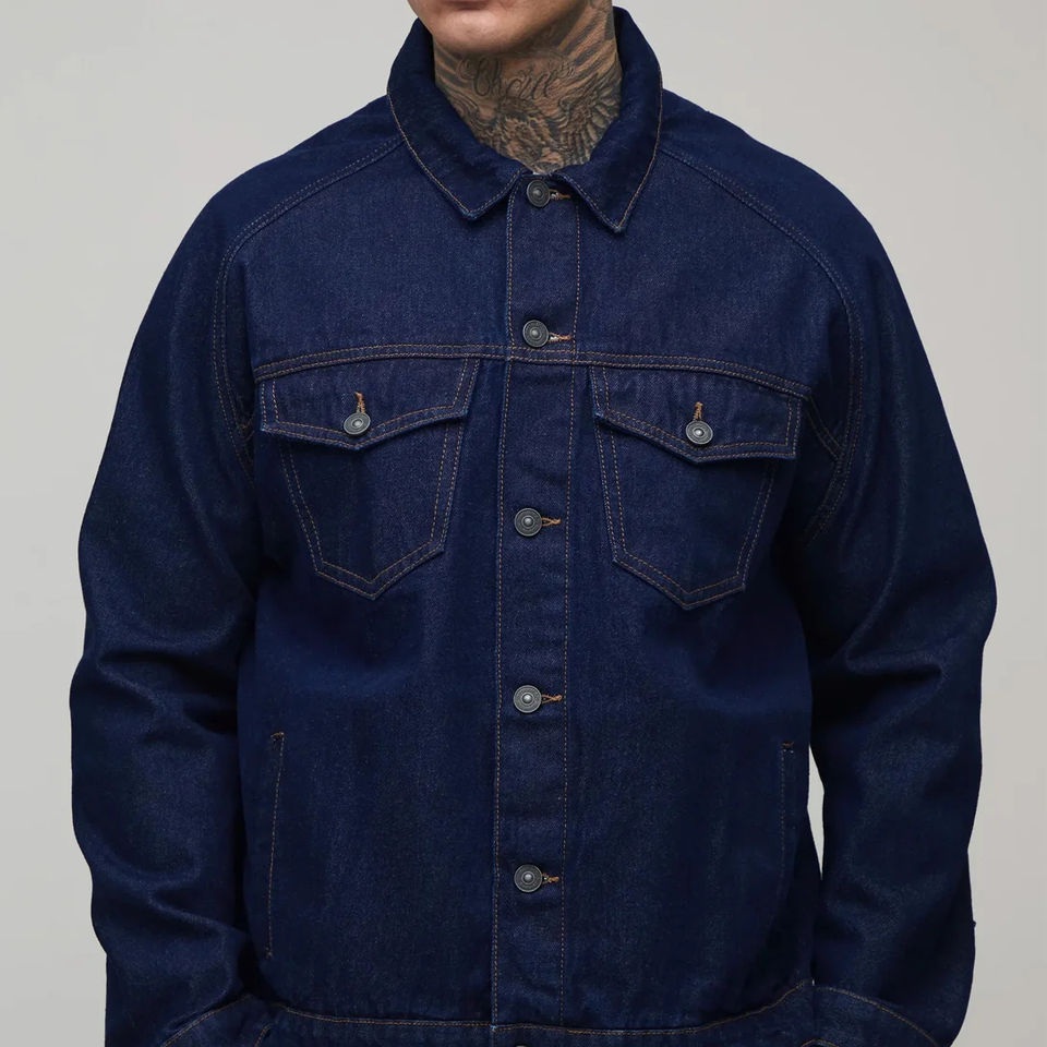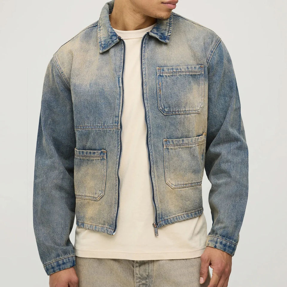 แจ็กเก็ตผ้ายีนส์เคลือบผิวระบายอากาศได้ดีเป็นมิตรต่อสิ่งแวดล้อมลำลองซักได้ตามต้องการ