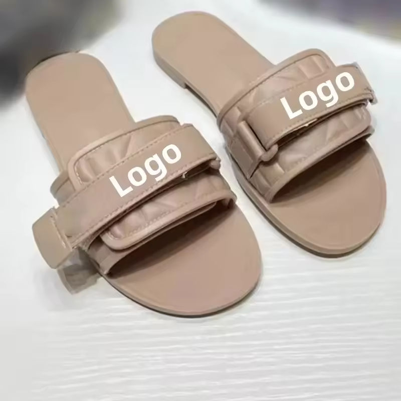 รองเท้าแตะส้นแบนสีดำของผู้หญิงรองเท้าแตะหรูหราฤดูร้อนแบรนด์ดีไซเนอร์