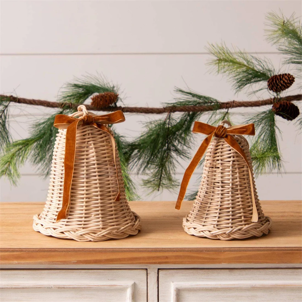 กระดิ่งหวายหวายมือเป็นมิตรต่อสิ่งแวดล้อมของตกแต่งต้นคริสต์มาสตกแต่งสไตล์ชนบทผลิตจากเวียดนาม