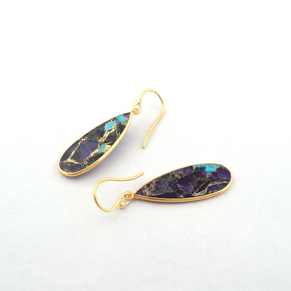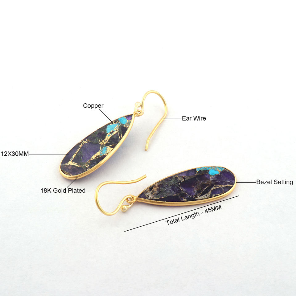 Wholesale fashion jewelry mohave amethyst copper turquoise dangle earring gold plated brass jewelry bezel set earring for women