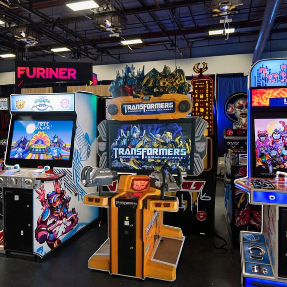 เครื่องเกมอาร์เคดทรานส์ฟอร์เมอร์สแบบขายส่ง จอภาพวิดีโอ ปืนคู่ บอร์ดเกมยิงปืนคู่ ภาษาอังกฤษ ทรานส์ฟอร์เมอร์ส สตีล