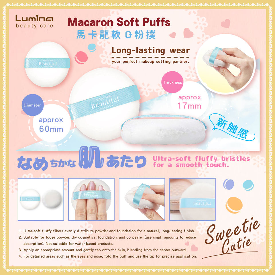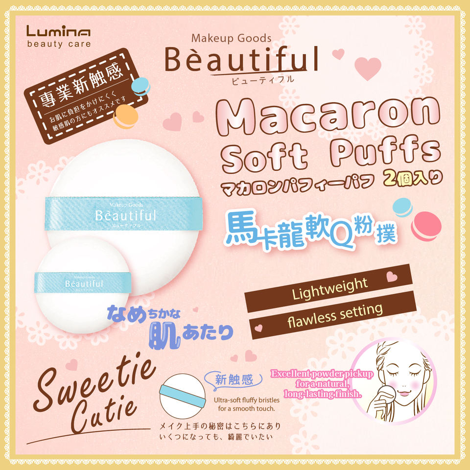 ขายส่งสำหรับการจัดจำหน่ายปลีก แป้งฝุ่นมาการองเนื้อนุ่มและเหนียว 2 ชิ้น เหมาะสำหรับใช้กับแป้งฝุ่น แป้งอัดแข็ง และรองพื้น