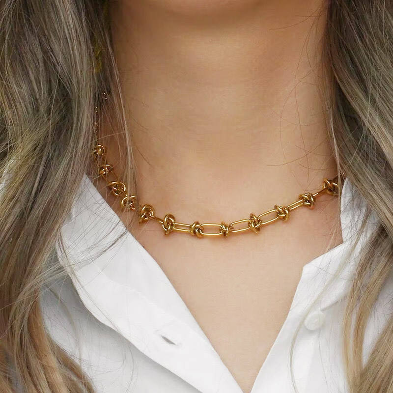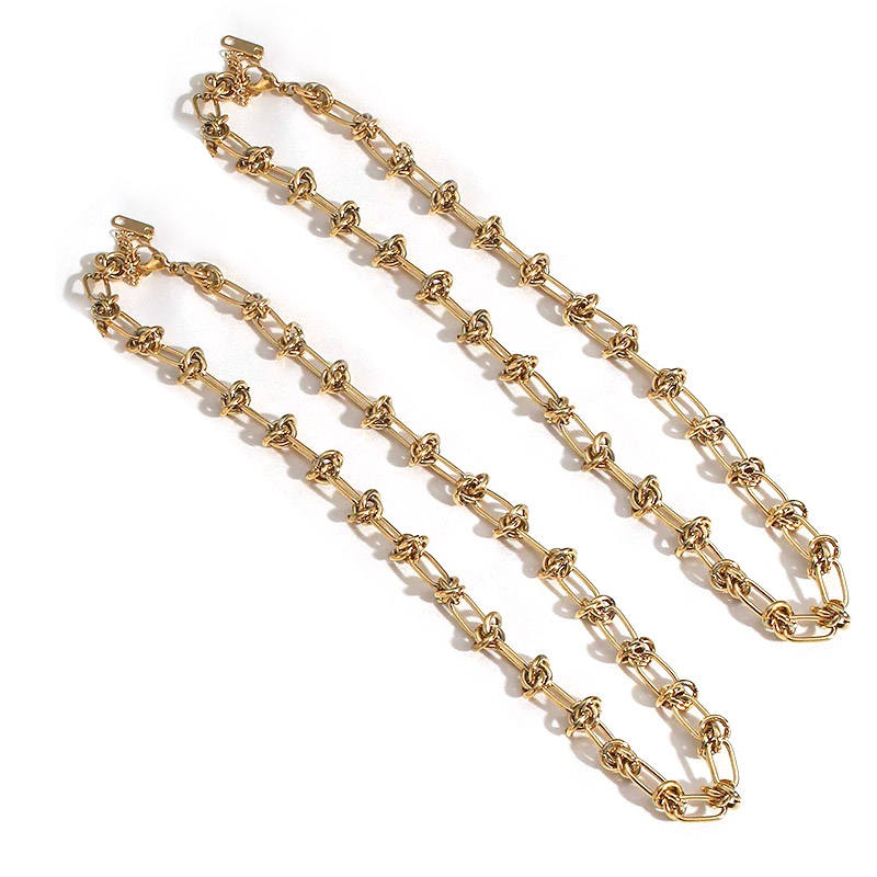 ขายส่งสร้อยคอชุบทอง18K สแตนเลสแบบคลาสสิกเรขาคณิตสร้อยคอพร้อมเพทายสร้อยคอมุกเทียม