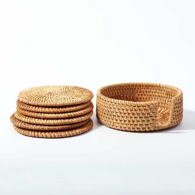 ที่รองแก้วหวายทำด้วยมืออุปกรณ์ตกแต่งโต๊ะที่ดีที่สุดและอุปกรณ์ครัวของตกแต่งบ้านที่ดีที่สุดต้องมี