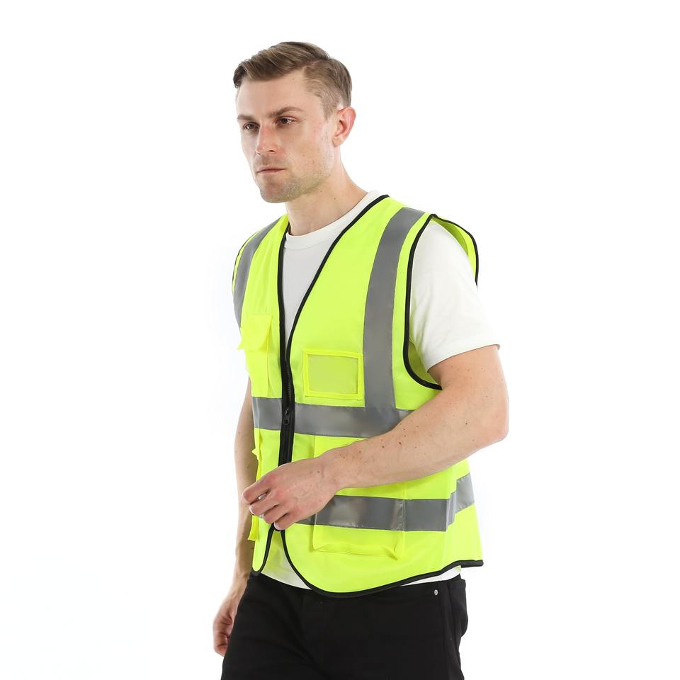 เสื้อกั๊กนิรภัยสะท้อนแสงสีเหลืองมองเห็นได้ชัดเจนเสื้อกั๊กกันน้ำสำหรับใส่ทำงาน
