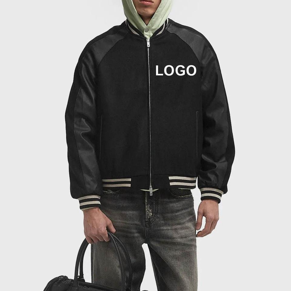 Wholesale high quality 100% polyester men's varsity jacket solid color oversize drop shoulder zip up man varsity