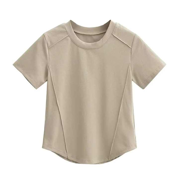เสื้อยืดสตรีคอกลมแขนสั้นผ้าคอตตอนแบบ100% ระบายอากาศได้ผ้าคอตตอนสีพื้นโลโก้ตามสั่ง