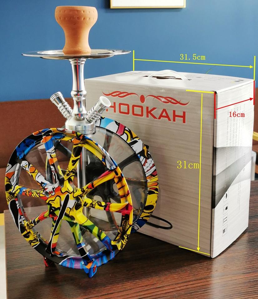 High Quality Wholesale Large Acrylic Wheel Hookah Set Double Tube Stainless Steel Hookah Accessories Manufactured Hookah