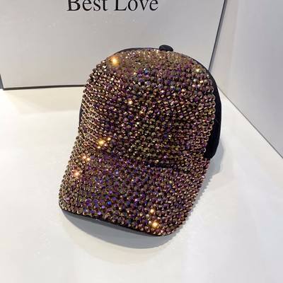 หมวกเบสบอล6แผงประดับพลอยเทียมแวววาวแบบดั้งเดิมพร้อมหัวเข็มขัดโลหะใช้ได้ทั้งชายและหญิง