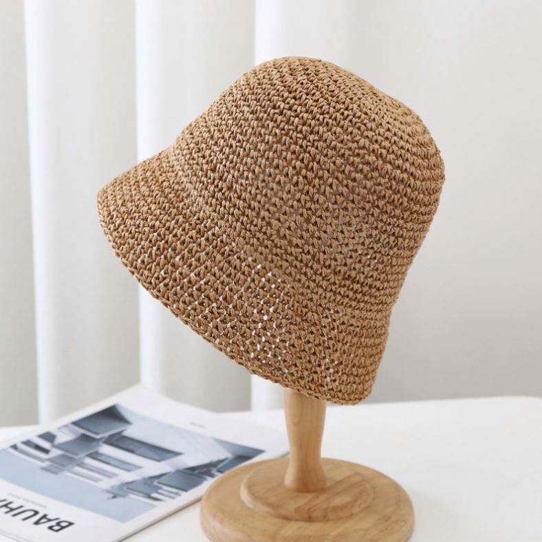 หมวกสานปีกกว้างกันแดดแฟชั่นสำหรับผู้หญิง สไตล์โครเชต์ แบบพับได้ เหมาะสำหรับใส่ไปเที่ยวทะเล มีจำหน่ายในราคาขายส่ง