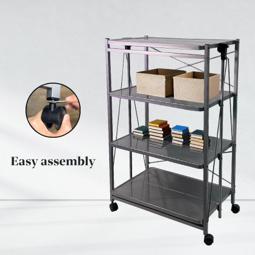 ชั้นวางของในครัวแบบพับเก็บได้มีล้อสำหรับเตาอบไมโครเวฟ