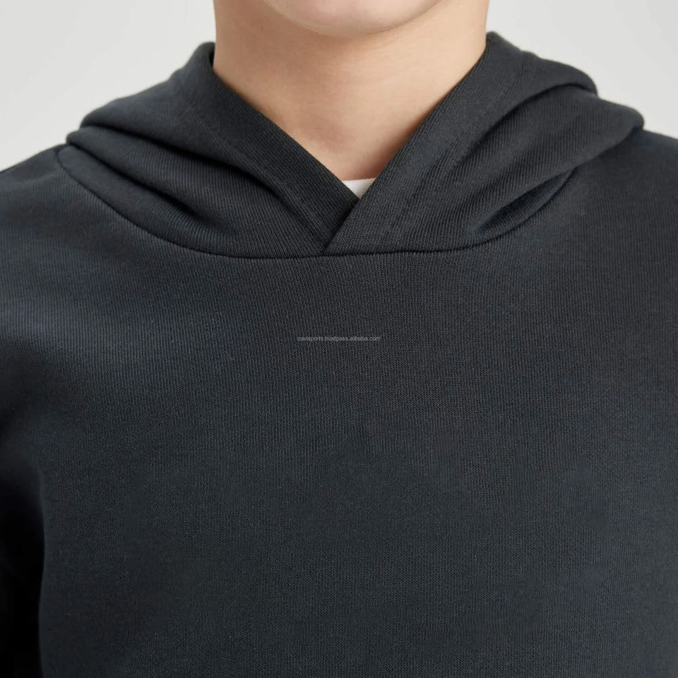 เสื้อฮู้ดสวมหัวสำหรับเด็กเสื้อกันหนาวแขนยาวสีดำพิมพ์โลโก้ได้ตามต้องการสำหรับ9/10