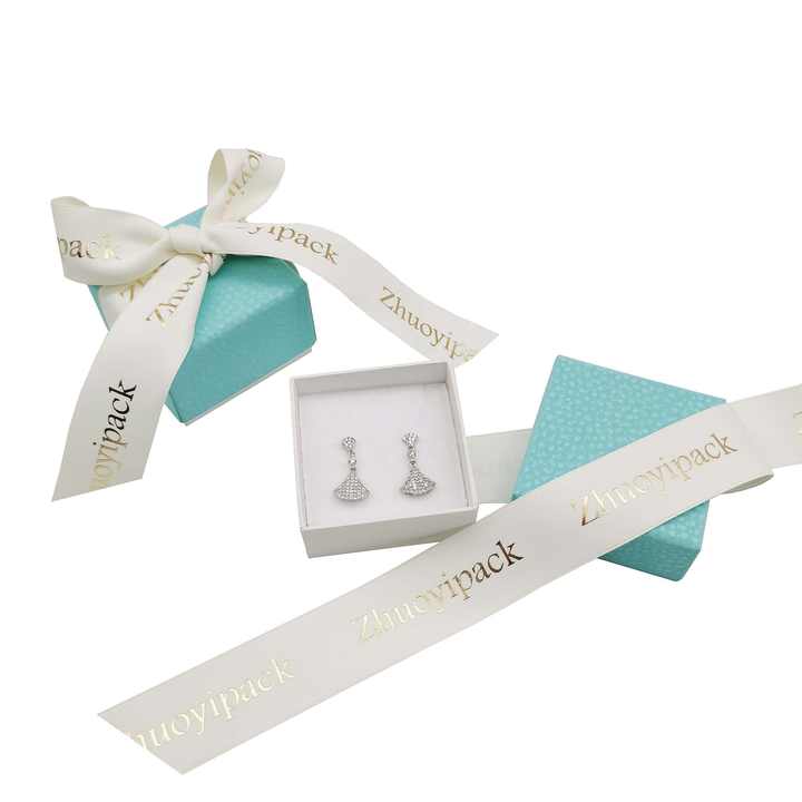 กล่องต่างหูกระดาษลายลิ้นจี่บรรจุภัณฑ์แบบกำหนดเองพร้อมริบบิ้นชื่อรายการ