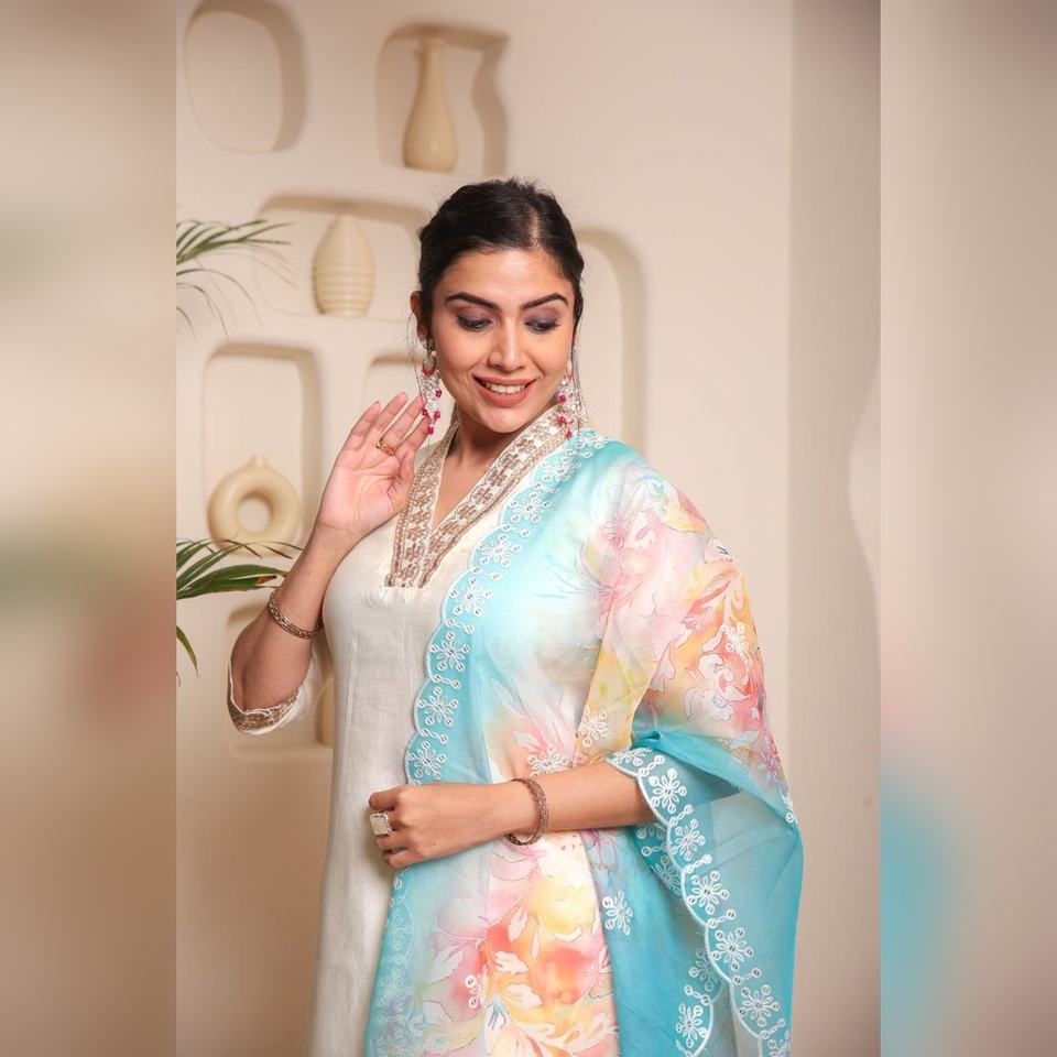 ราคาส่งจากโรงงานผลิต ชุดคุर्ติผ้าฝ้ายอเลียนา ชานเดรี พร้อมผ้าคลุมไหล่ปักลายออร์แกนซ่า มีจำหน่ายจำนวนมาก ไซส์ S ถึง XXL