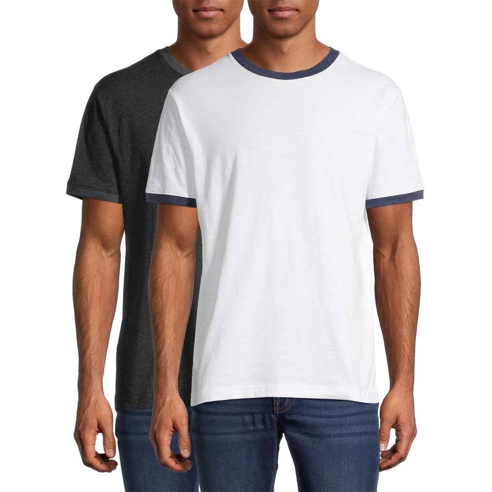 เสื้อยืดพรีเมี่ยมสำหรับผู้ชายผ้าคอตตอนถักทรงหลวมสีขาวเหลืองลายตัวอักษรริงเกอร์100% ผ้าฝ้ายโพลีเอสเตอร์/ คอตตอน