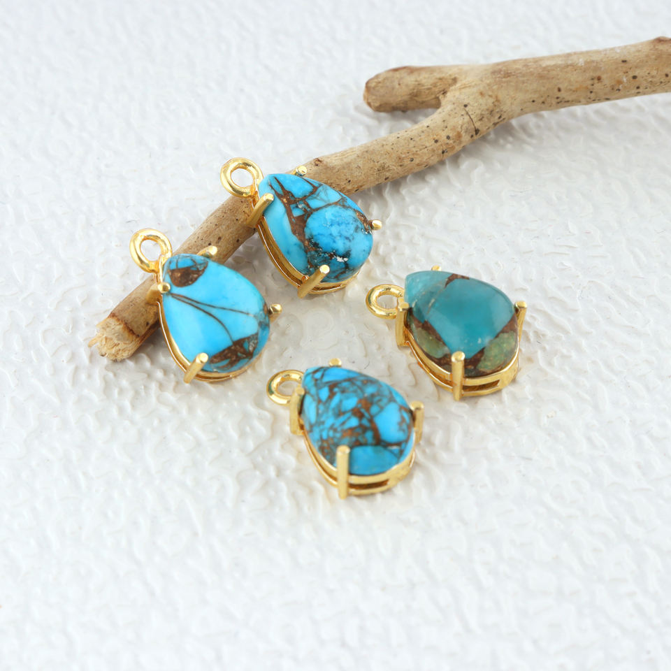 ตัวเชื่อมต่อเครื่องประดับ DIY รูปทรงลูกแพร์แบบห่วงเดี่ยว ดีไซน์แบบหนามเตย ทำจากโลหะผสมโมฮาเวแซฟไฟร์ คอปเปอร์ เทอร์ควอยซ์ สำหรับงานขายส่ง