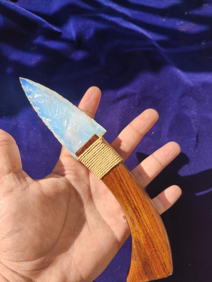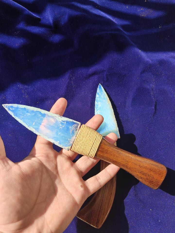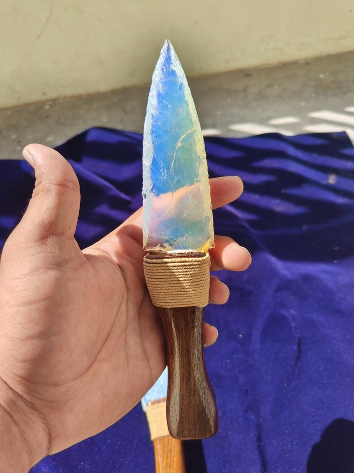 หินคริสตัลธรรมชาติขายส่ง หินบำบัดทำมือ หัวลูกศรโอปอล โอปอลไลท์ อาเกต หัวลูกศรแบบมีด พร้อมด้ามไม้