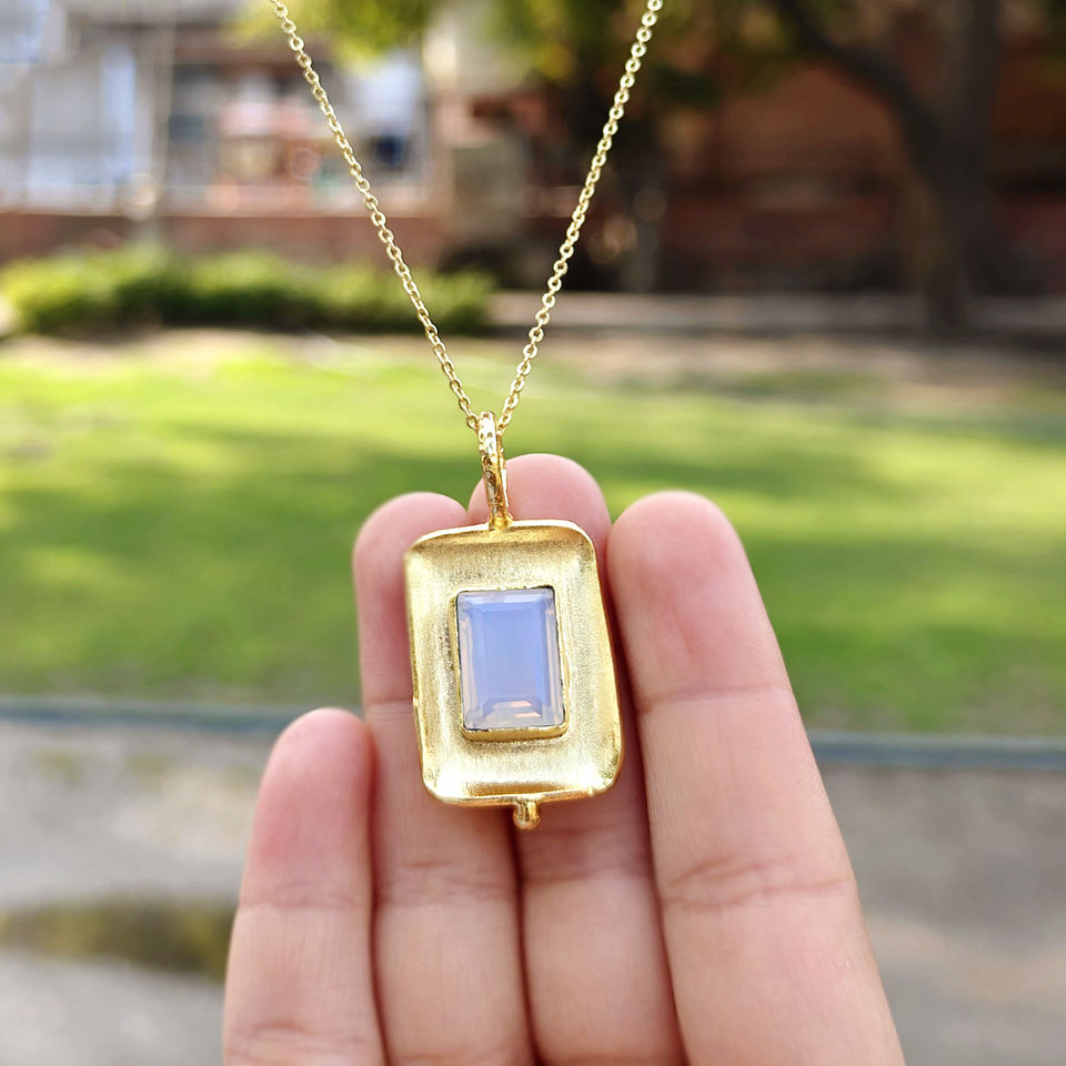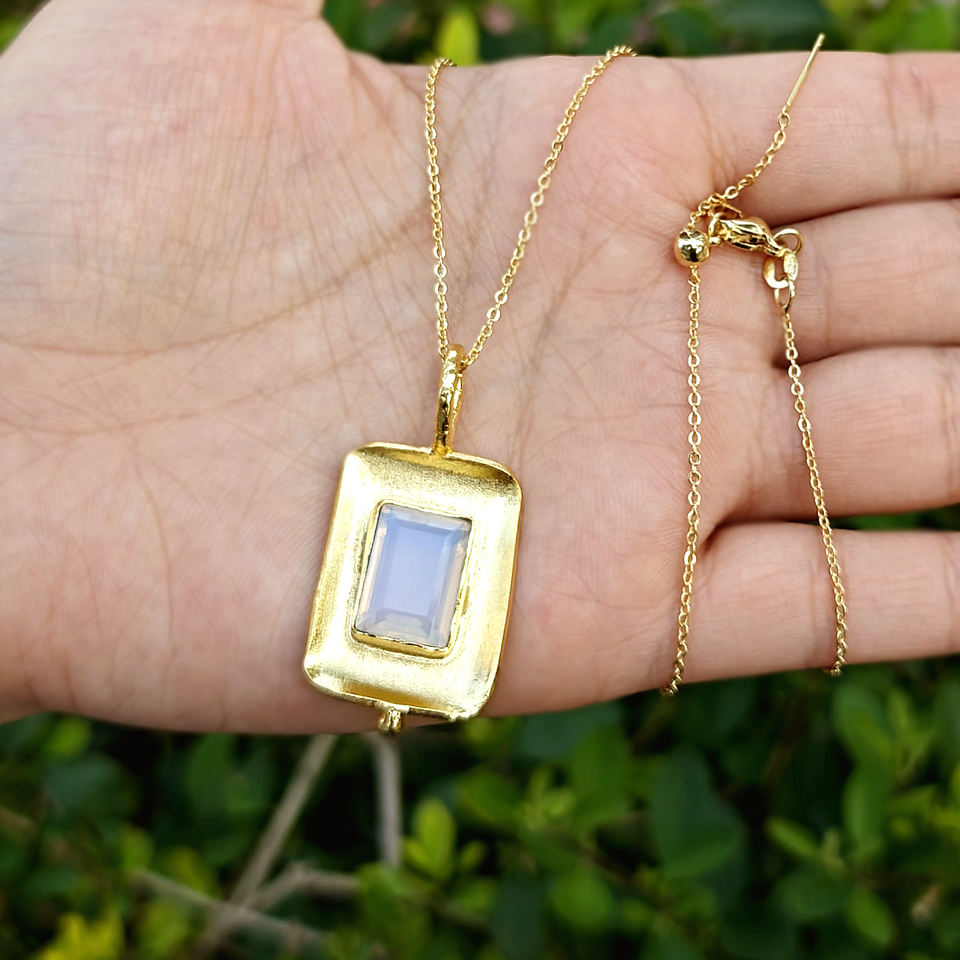 สร้อยคอขายส่ง จี้โอปอลไลต์ทรงสี่เหลี่ยมผืนผ้า ชุบทอง 18k แบบขัดเงา