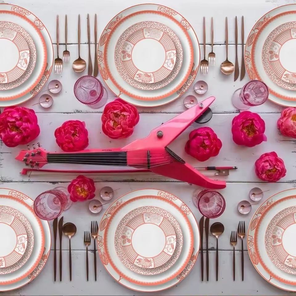 จานกระดูกจีนสำหรับงานแต่งงานสีชมพูคลาสสิกแบบชาวยุโรป