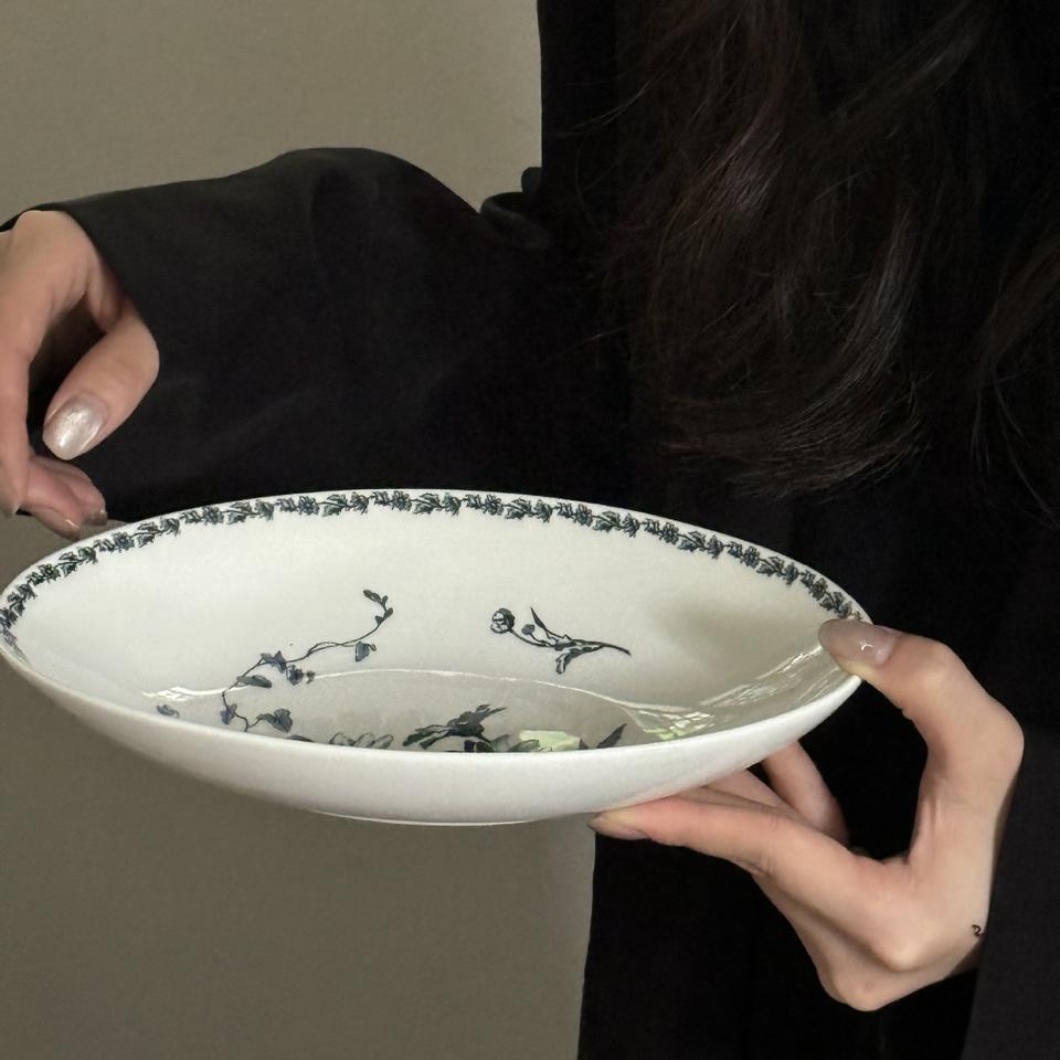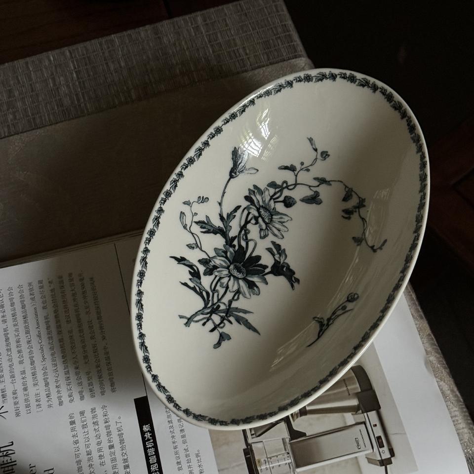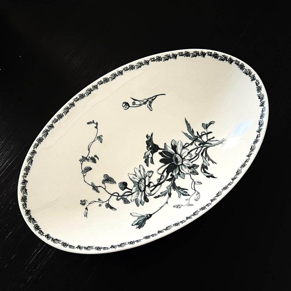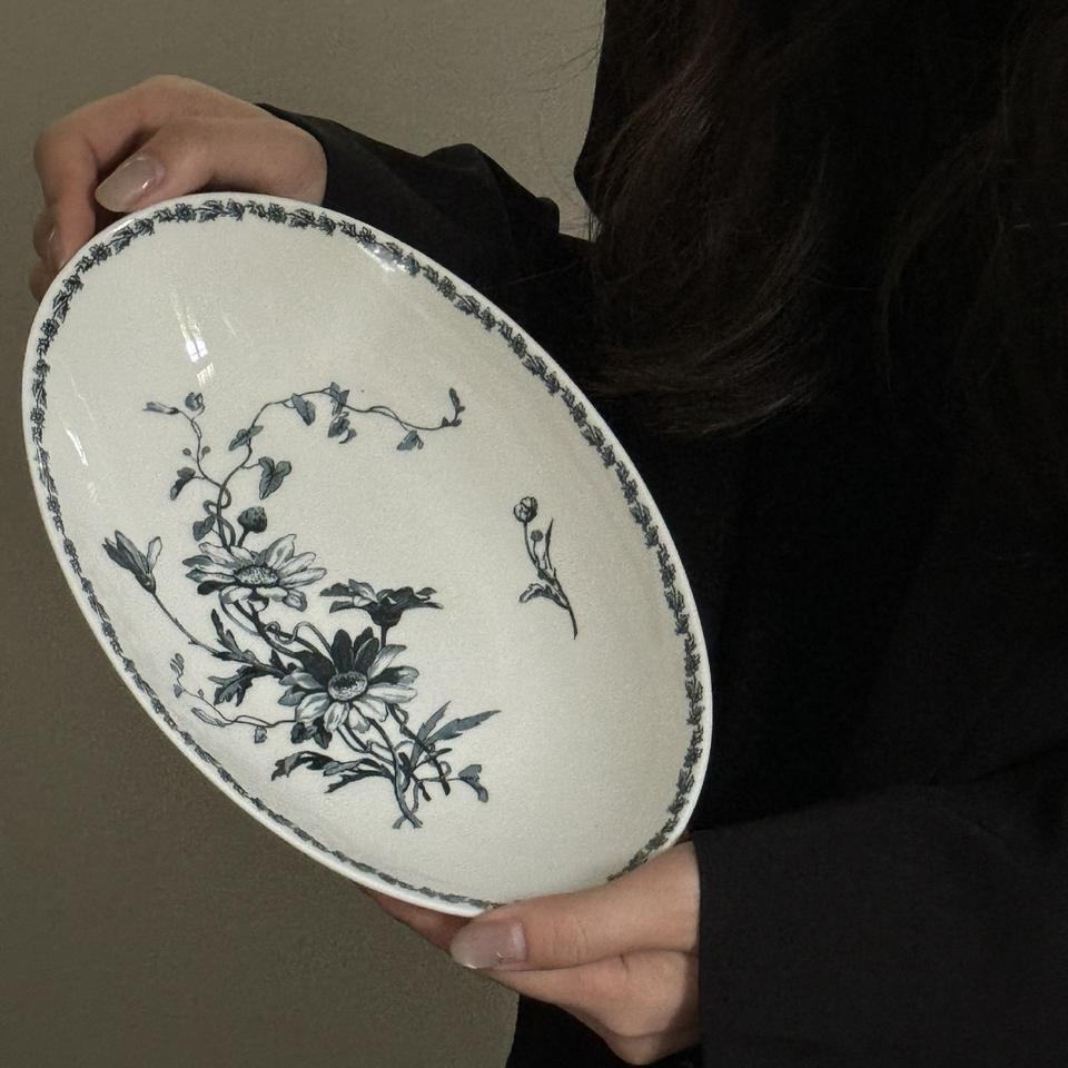 เดซี่ทรงวงรีสไตล์วินเทจของฝรั่งเศสจานทรงลึกขนาดเล็กจานของหวานจานอาหารเช้าที่เก็บและจานเสิร์ฟ