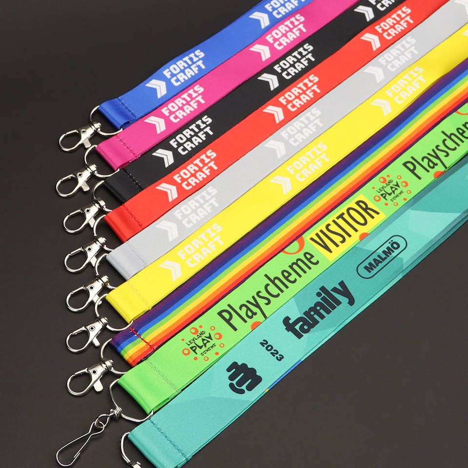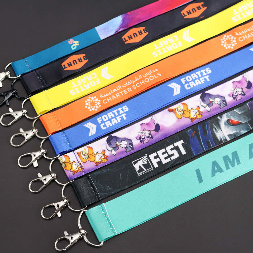 สายคล้องคอโพลีเอสเตอร์แบบขายส่ง ปรับแต่งได้ พร้อมหัวเข็มขัด พิมพ์โลโก้ตามสั่ง สำหรับงานอีเว้นท์และบัตรประจำตัวพนักงาน