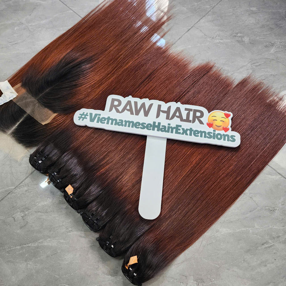 มัดผมมนุษย์แบบตรงและด้านหน้าของผมสีน้ำตาลออมเบรสีน้ำตาลขายส่ง100% เวียดนาม
