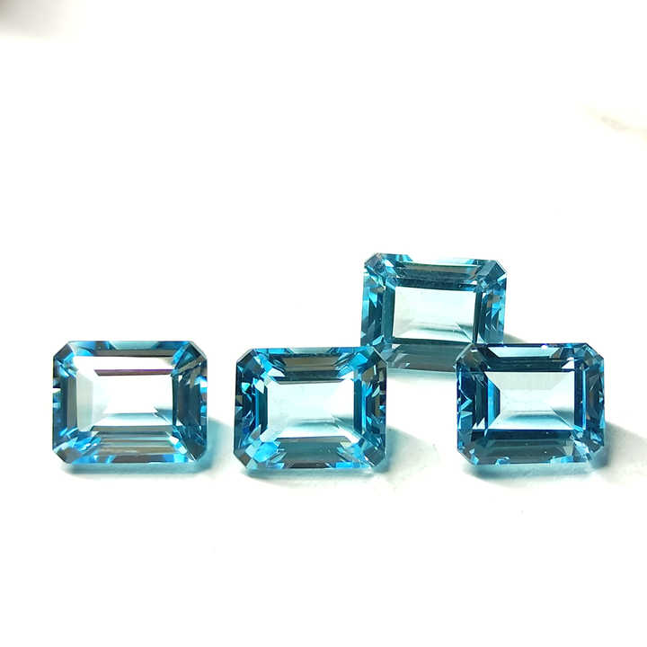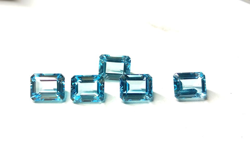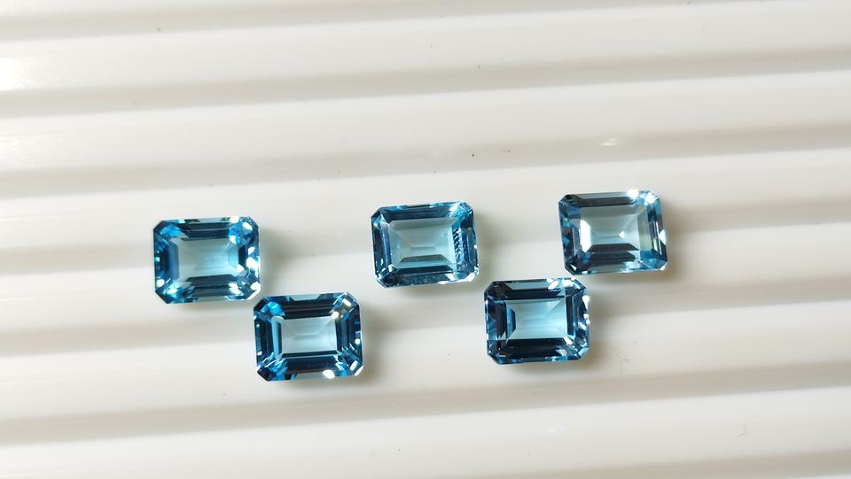 พลอยควอตซ์เจียระไนเหลี่ยมเพชรพลอยขนาด8x10มม. สีฟ้าบุษราคัมออกแบบได้ตามต้องการจากอินเดีย