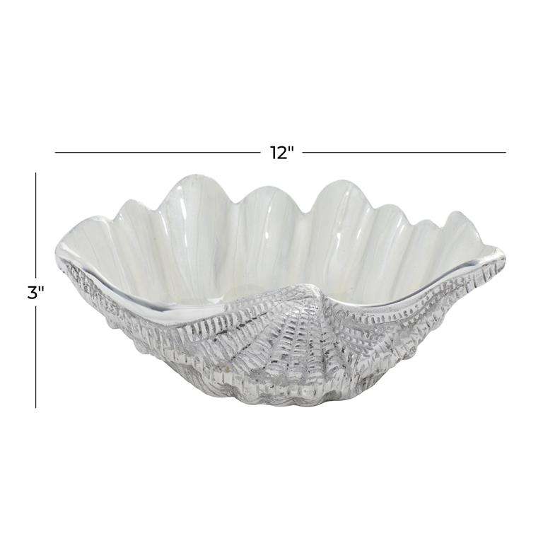 Wholesale Price White Aluminum Metal Shell Shell Serving Bowl With Enamel Interior, 12" X 9" X 3"