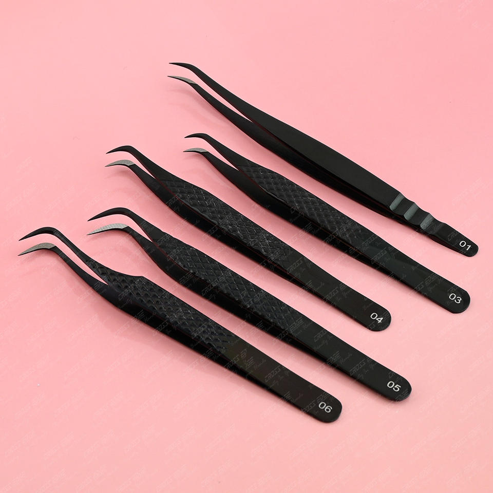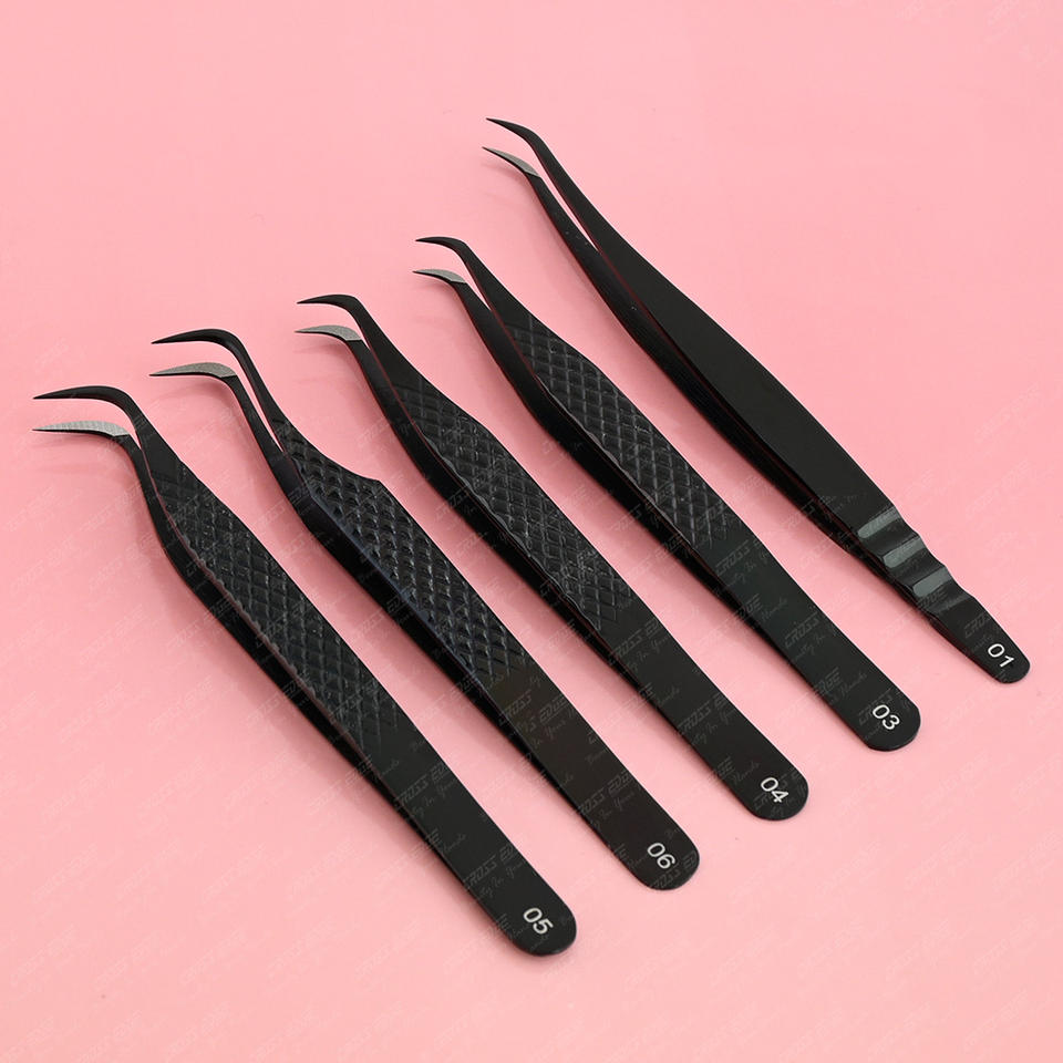 อุปกรณ์ต่อขนตาสแตนเลสสีดำ5ชิ้น