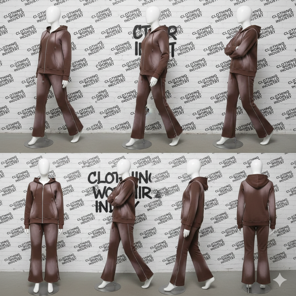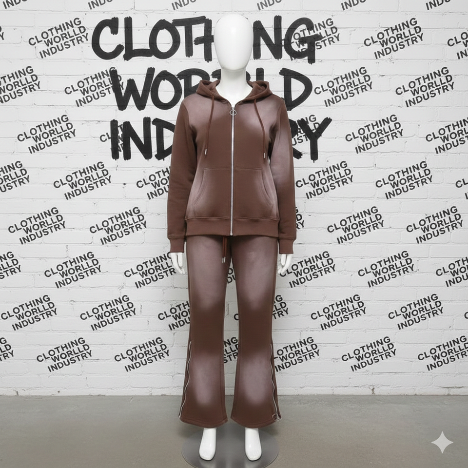 ชุดวอร์มขายส่ง กางเกงขาบาน เสื้อฮู้ดครอป ซิป แอซิดวอช แขนยาว มีฮู้ด ทรงหลวม สำหรับผู้หญิง